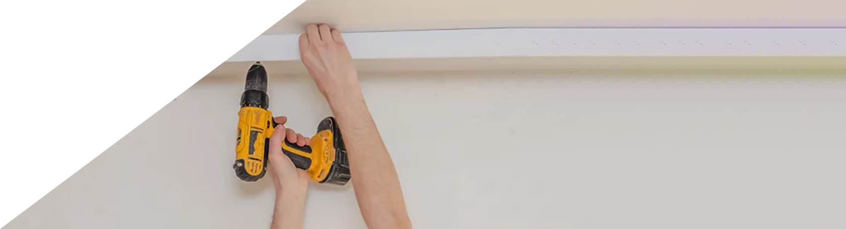 Один из финальных этапов работ, в ходе которого монтируются натяжные потолки. Наши работники не оставляют после себя мусора.